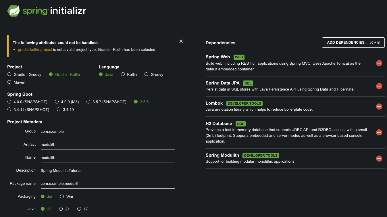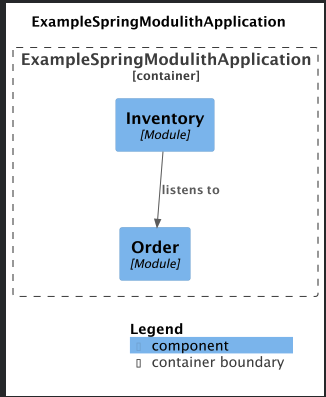 3 ApplicationModules modules = ApplicationModules.of(ExampleSpringModulithApplication.class);